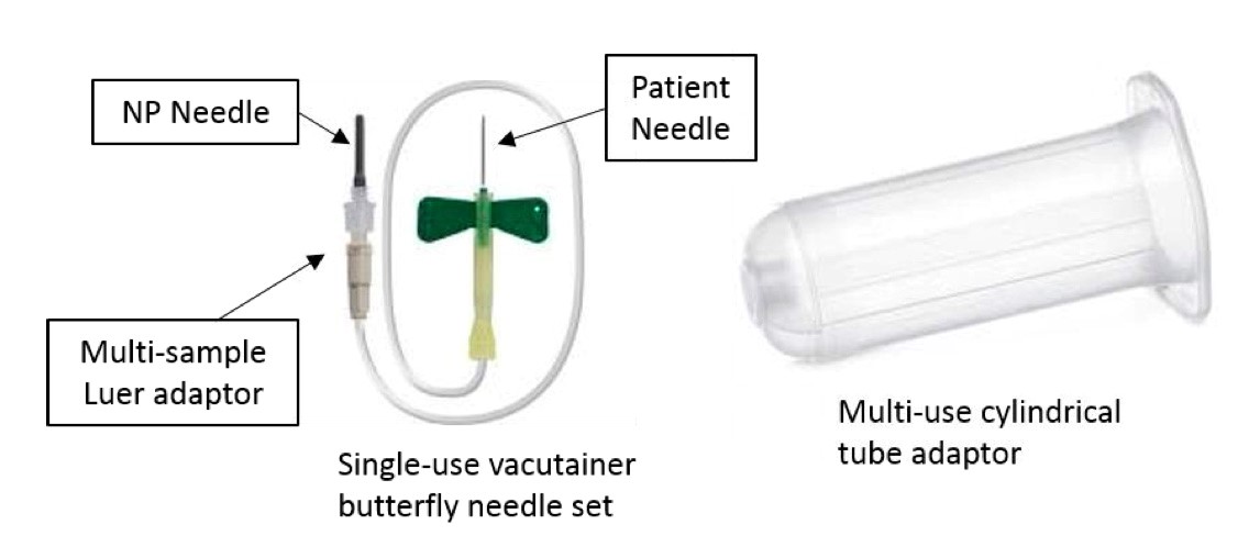 system, select either a 25 or 21 gauge single-use BD butterfly set, which